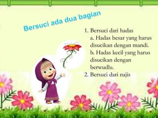 Karna bersuci merupakan kunci dari ibadah dan satu-satunya alat yang bisa digunakan adalah air. Contohnya air mutlak ﻤﻄﻠﻖ. Air Suci dan Menyucikan Air suci dan menyucikan artinya dzat air tersebut suci dan bisa digunakan untuk bersuci.